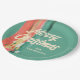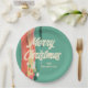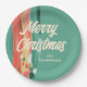 Resumen Modern Merry Navidad Fiesta de papel de nombre personalizado Plates presenta trazos abstractos modernos con el texto "Feliz Navidad" en un guión elegante y personalizado con su nombre a continuación. Perfecto para regalos de Navidad y decoración de vacaciones. Diseñado por ©Evco Holidays www.zazzle.com/store/evcoholidays