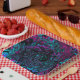 Plato De Papel Retro Aqua Magenta y Black Abstract Swirl