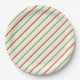 Plato De Papel Retro Candy Cane Navidades Strips Red Green