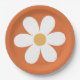 Platos de primer cumpleaños inspirados en el retro con dásies de estilo de los años 70 y fuentes y colores boho.