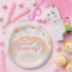 Plato De Papel Retro Dos Groovy Chica Arcoiris Segundo cumpleaños