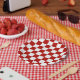 Cuadros de cuadros de color rojo oscuro y blanco geométrico Fiesta de patrones retro Suministros. Patrón cuadrado geométrico retro de Guay. Baldosas de época blanco y negro rojo moderno.