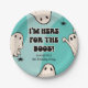 Platos de papel de la fiesta de cumpleaños de Halloween con un fondo azul brillante, un grupo de fantasmas retro, arañas escalofriantes, el divertido dicho "¡estoy aquí para los abucheos!", y una plantilla de texto moderna que es fácil de personalizar.