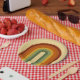 Plato De Papel Retro Groovy silencioso y arcoiris estratificado