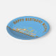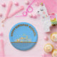 Adorable personalized birthday party plate featuring a sweet animal train illustration on a soft blue background. The design showcases cute jungle and woodland animals riding together in colorful train cars, with “Happy Birthday Michael” displayed in playful lettering across the top. Perfect for a child’s birthday celebration, this charming plate adds a fun, personalized touch to party tables and makes a memorable keepsake for kids.