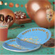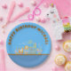 Adorable personalized birthday party plate featuring a sweet animal train illustration on a soft blue background. The design showcases cute jungle and woodland animals riding together in colorful train cars, with “Happy Birthday Michael” displayed in playful lettering across the top. Perfect for a child’s birthday celebration, this charming plate adds a fun, personalized touch to party tables and makes a memorable keepsake for kids.