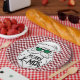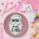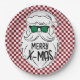 Plato De Papel Retro Red Pink Checkered Santa Claus Christmas