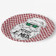 Retro Red Pink Checkered Santa Claus Christmas Paper Plates.