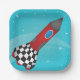 Plato De Papel Retro Red Rocket Ship in Space Galactic