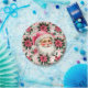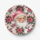 Retro Rosa Santa Claus Navidades Platos de papel con placas de plástico