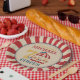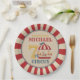¡Vengan todos! Completa tu decoración en la fiesta de cumpleaños más grande bajo la tapa grande con nuestros modelos de planchas de fiesta de carnaval de circo. Las planchas de la fiesta de cumpleaños de este carnaval de circo presentan un carrusel rojo y azul vintage con un fondo de carpa rojo en una plancha fiesta.