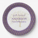 Disfrute de este diseño de púrpura real con su próxima reunión familiar. Fondo de baldosas de nudo morado y dorado con un árbol dorado claro sobre blanco en el centro. Patrón de nudo de filigree dorado en borde morado.