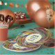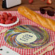 Ve brillante y vibrante para tu próxima reunión familiar con estos platos de papel. El fondo es un vibrante giro de color con un gran círculo sólido para el texto. Personaliza fácil y rápidamente estos platos para darle un toque especial a tu cena anual o picnic.