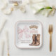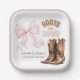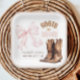 Placas de papel revelador de género Boots o Bows con un par de botas de vaquero occidentales y un lindo lazo de cinta de cintura. ¿Qué será el bebé?