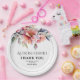 This elegant wedding paper plate showcases a beautiful rhododendron branch adorned with peach-pink flowers and greenery at the upper part. The couple's names are prominently displayed in decorative typography, adding a personal touch to the design. A heartfelt message of 'Thank You' is also included, expressing gratitude to the guests. Completing the look, a stylish thin black border gracefully adorns the plate, adding a touch of sophistication to any wedding celebration.