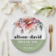 Rhododendron peach-pink flowers typography wedding Paper Plate. This elegant wedding paper plate showcases a beautiful rhododendron branch adorned with delicate peach-pink flowers and greenery at the upper part. The couple's names are prominently displayed in bold typography, adding a personal touch to the design. A heartfelt message of 'Thank You' is also included, expressing gratitude to the guests. Completing the look, a stylish sage green band gracefully adorns the bottom of the napkin, adding a touch of sophistication to any wedding celebration.