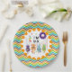 Robots Las placas de papel de la fiesta de cumpleaños número 6 tienen cuatro robots de color azul, verde, naranja y morado con muchas antenas, botones, luces, engranajes, texto que dice Soy SEIS, y un amplio borde de rayas de chevron en azul, verde, marrón, blanco y naranja!
