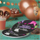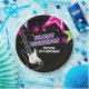 ¡fiesta como estrella de rock! Fiesta de cumpleaños con estrellas de neón rosa, morado y verde y guitarra.