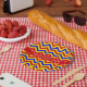 Plato De Papel Rojo, Amarillo, Azul LG Chevron Nombre Rojo Monogr