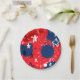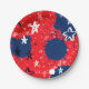 Plato De Papel Rojo con manchas azules y estrellas negras y blanc