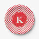 Plato De Papel Rojo monogramado sobre Punto de Polka Blanco