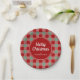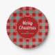 Plato De Papel Rojo Rústico Cheques Búfalo Jugado Feliz Navidad