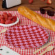 Plato De Papel Rojo y rosado caliente bajo control