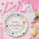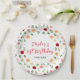 This beautiful and elegant plate features watercolor red, pink and orange roses with foliage. The text combines handwritten script and serif fonts for a stylish and modern look. This is perfect for a summer rustic birthday party.