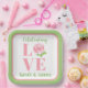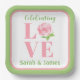 Plato De Papel Rosa acuarela AMOR Nombre Boda Verde
