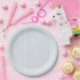 Plato De Papel Rosa, Azul Pastel, Puntos Blancos y Tiras Napkin