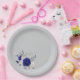 Plato De Papel rosa azul real flores blancas gris