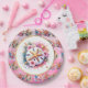 Plato De Papel Rosa, azul y dorado costero dólar de arena playero
