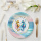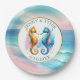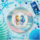 Plato De Papel Rosa, azul y dorado costero dólares de arena playe