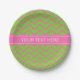Plato De Papel Rosa Caliente #2 Lime Verde LG Nombre Chevron Mono