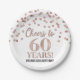 Saludos a los platos de cumpleaños de 60 años con el rosa purpurina de oro confetti.