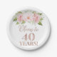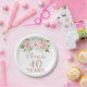 Plato De Papel Rosa con flores rosadas a 40 años cumpleaños
