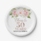 Plato De Papel Rosa con flores rosadas a 50 años cumpleaños