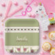 Plato De Papel Rosa Con Verde Y Pluma