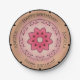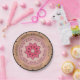 Esta placa de fiesta de papel contiene texto que el cliente debe personalizar. Sustitúyase "¡Feliz cumpleaños!" "Angela" por tu propio saludo y nombre para que encaje con tu fiesta o evento. El diseño presenta una flor de color rosa en el centro sobre un fondo de melocotón y rosa con acentos negros.