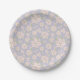 Disfrute de sus comidas fiestas favoritas en este plato de papel floral con flores rosa rubor sobre un fondo de lavanda.