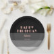 Plato De Papel Rosa Guión dorado Bandas Gris Negras Cumpleaños