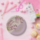 Plato De Papel Rosa Mauve Y Verde Claro Con Blanco