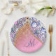 Plato De Papel Rosa Monogramado Purpurina Girly Personalizado