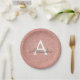 Plato De Papel Rosa Oro Glitter & Brillo Monograma Cumpleaños