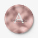 Plato De Papel Rosa Oro Rosado Metalizado Monograma Cumpleaños
