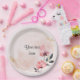 Plato De Papel Rosa Pastel y marco dorado elegante plantilla Napk
