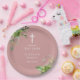 Plato De Papel Rosa Polvoriento Verde Baptismo
