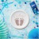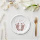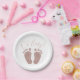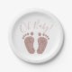 Estas placas de papel de Baby Shower de Chica son adorables con pies de bebé rosa purpurina de oro y Oh Baby! en una tipografía elegante.