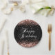 Plato De Papel Rosa Purpurina de oro Negro Feliz cumpleaños