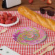 Plato De Papel Rosa retro, amarillo y magenta Resumen de arte gro